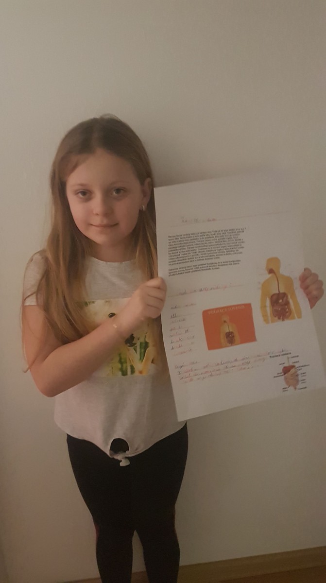Žiaci 3. A triedy pripravili krásne projektové práce na tému Objavujem ľudské telo. Práce zamerali na tráviacu alebo vylučovaciu sústavu. Žiaci vo svojich projektoch preukázali veľkú mieru nápaditosti, šikovnosti a kreativity.