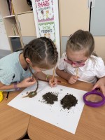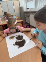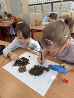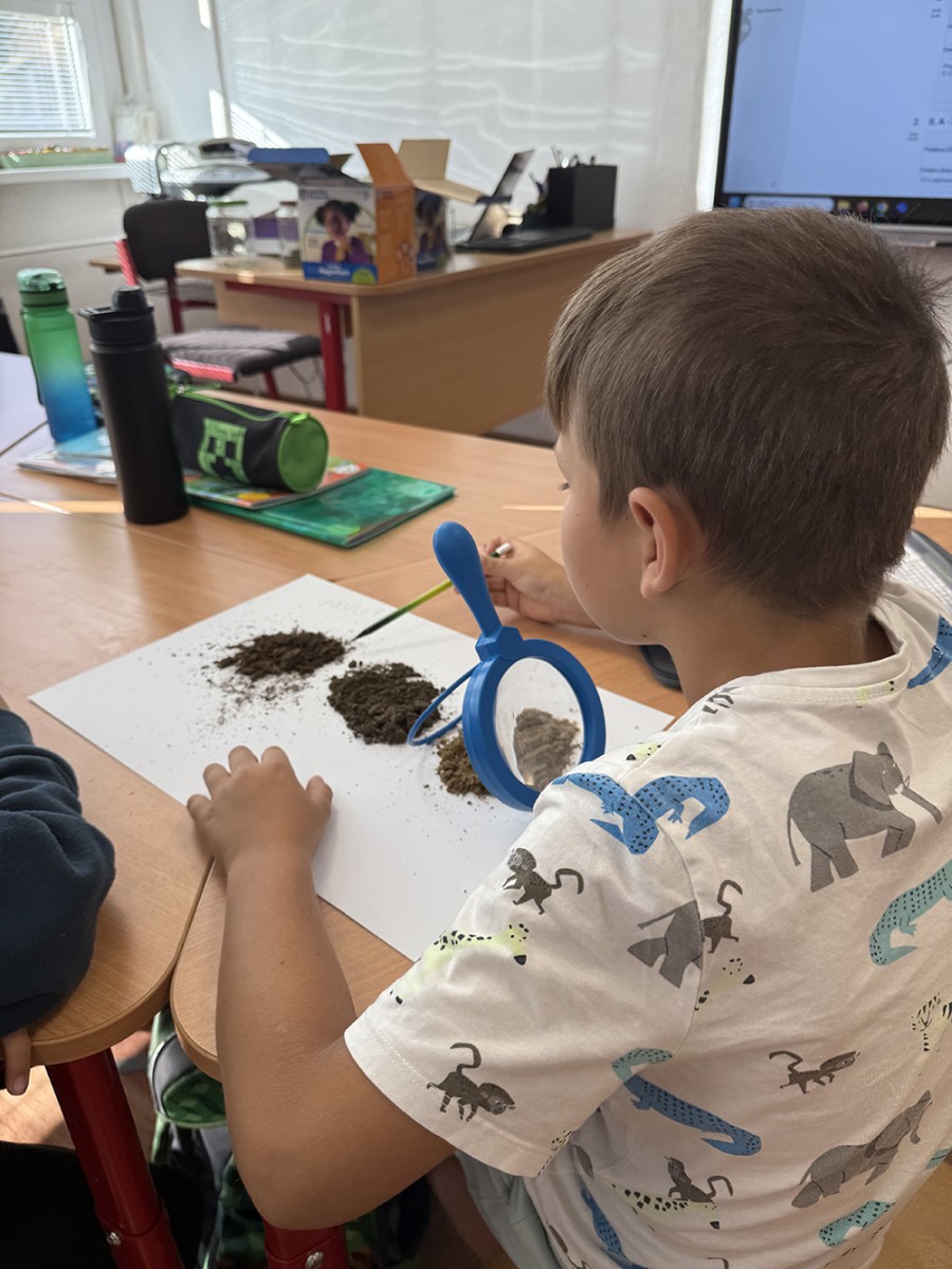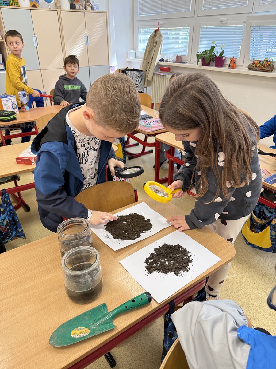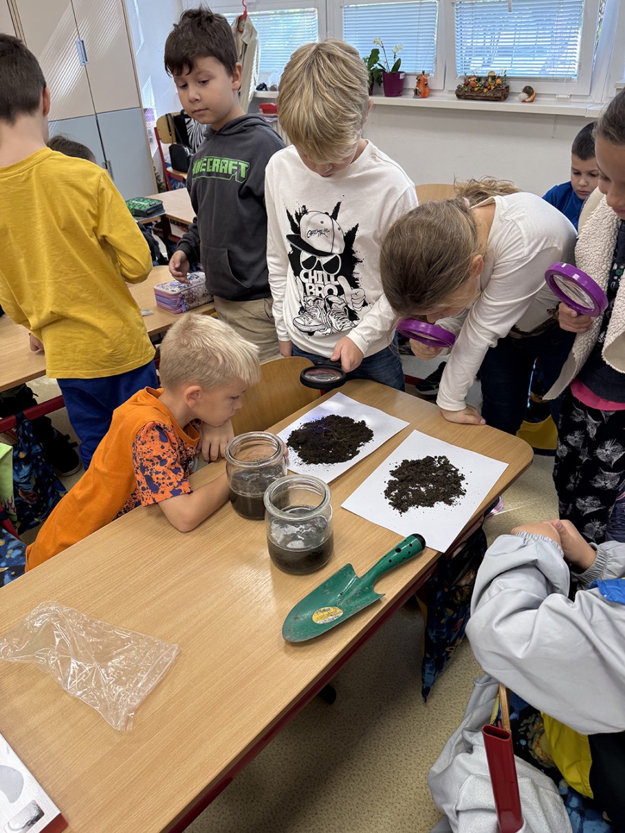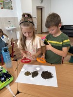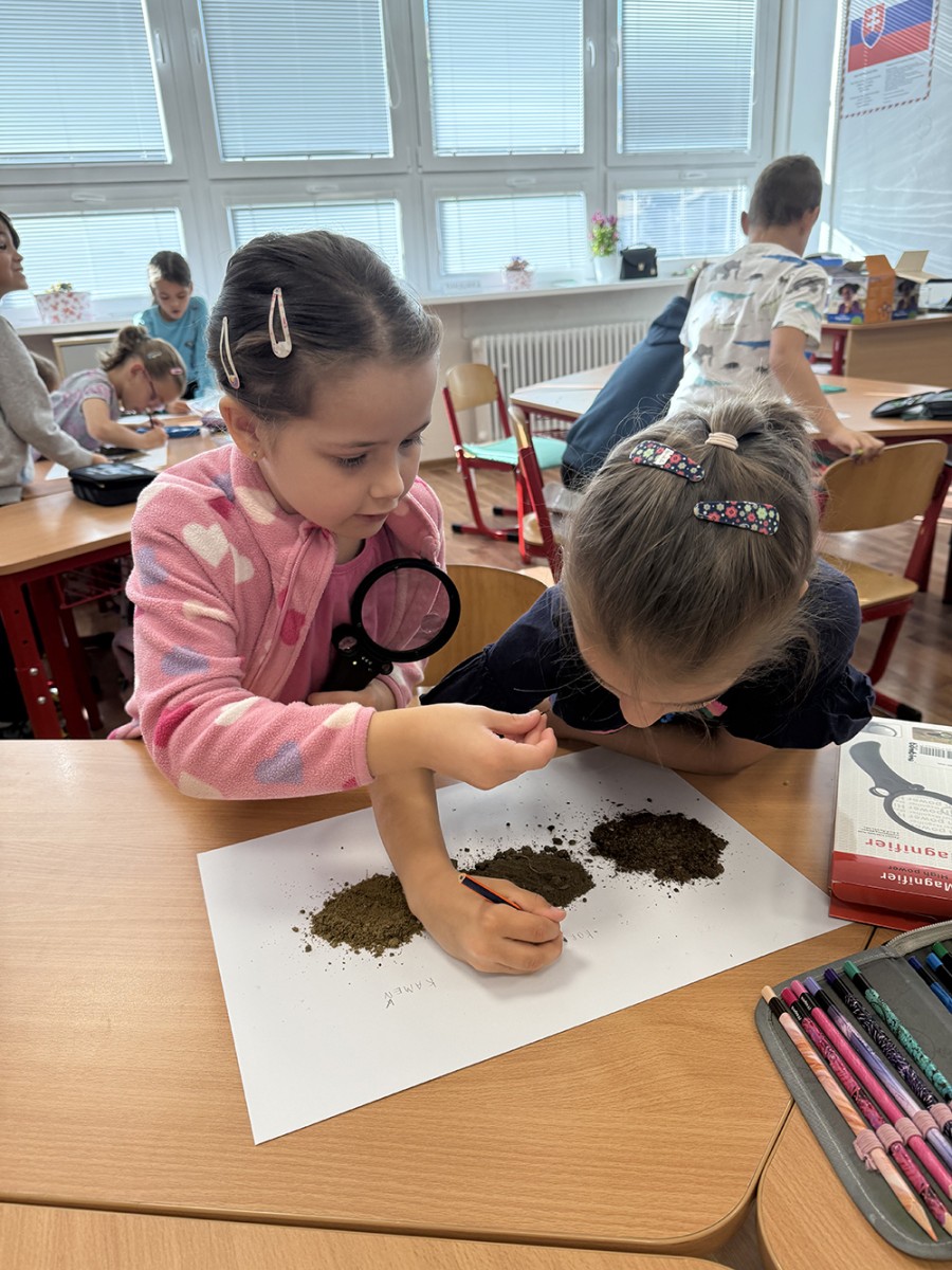 Skúmali vzorky pôdy z rôznych miest – zo školského dvora, z lúky či zo záhrady. Porovnávali farbu, vôňu, vlhkosť a zisťovali, čo všetko sa v pôde ukrýva. Objavili drobné kamienky, korienky rastlín a dokonca aj malé pôdne živočíchy.