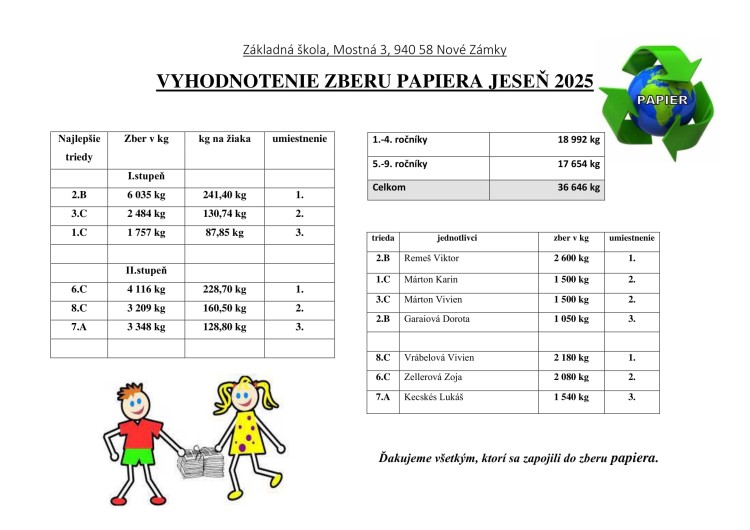 Vyhodnotenie jesenného zberu papiera13.11.2025