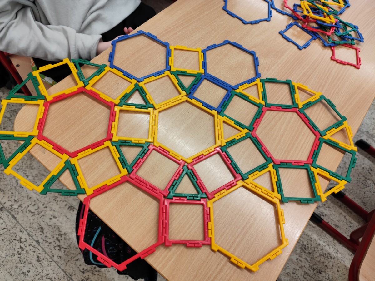 Na hodinách matematiky pracujú žiaci s novou stavebnicou Polydron, ktorá im pomáha lepšie pochopiť geometriu. Prostredníctvom skladania a modelovania si názorne osvojujú uhly, siete telies, tvary telies a ich vlastnosti.