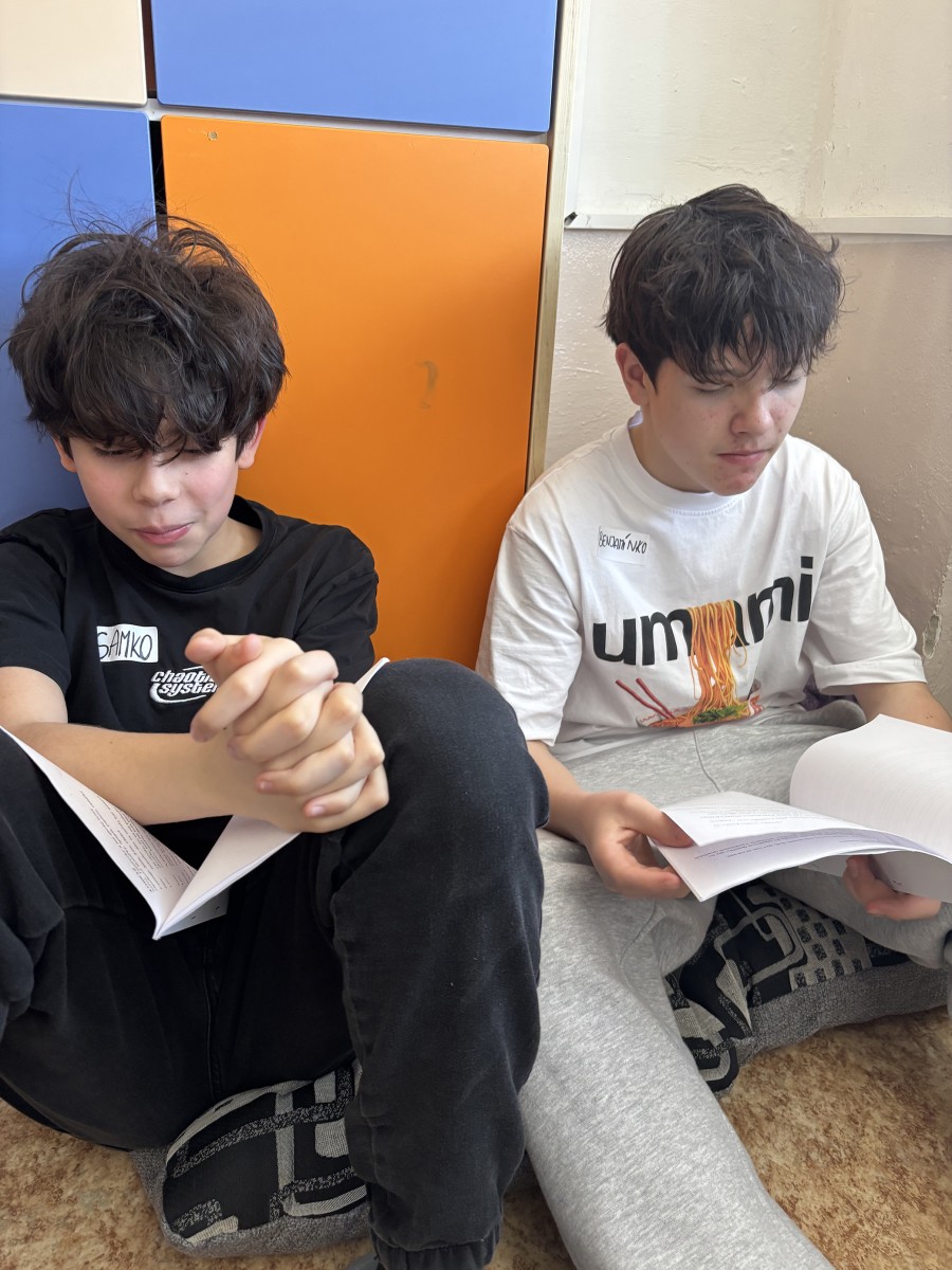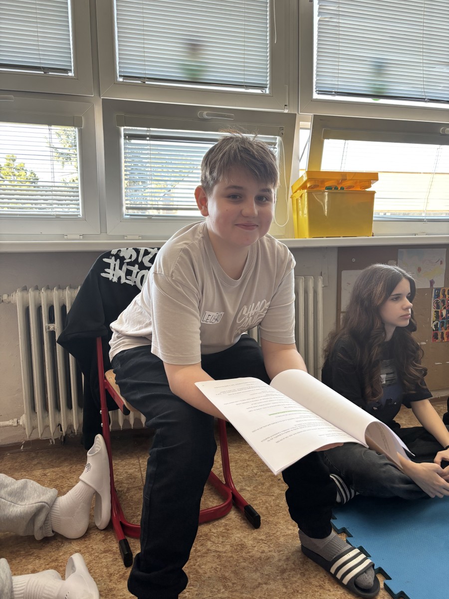 Trieda siedmakov sa premenila na malé divadelné javisko plné smiechu a improvizácie. Žiaci mali možnosť nahliadnuť do sveta profesionálneho divadla a zároveň si sami vyskúšať rôzne techniky, pohybové a hlasové cvičenia, ktoré im majú pomôcť uvoľniť sa, zbaviť sa hanblivosti a trémy na vystúpení. Siedmaci si vyskúšali improvizačné herecké techniky, pohybové hry zamerané na sústredenie, artikulačné cvičenia i krátku čítačku textov, kde sa kládol dôraz na splývavú výslovnosť, dôrazy a prízvuky.