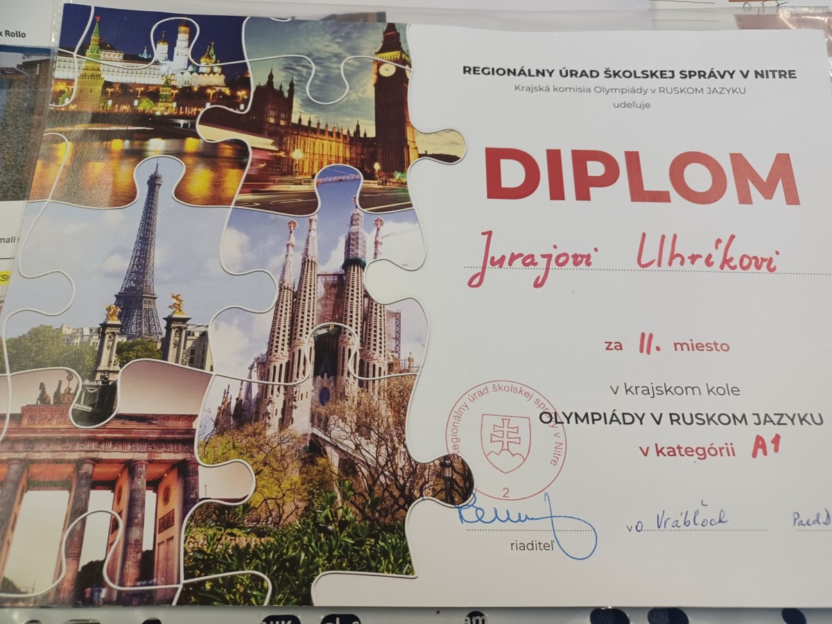 Juraj Uhrík z 8.A sa aj v tomto školskom roku zúčastnil krajského kola Olympiády v ruskom jazyku. A opäť stál na stupni víťazov. Získal 3.miesto.